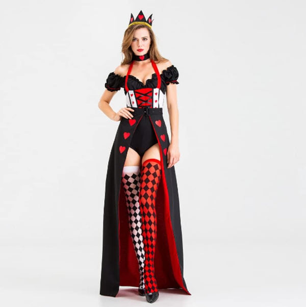 Inspired by the timeless Wonderland classic, this costume brings the Queen of Hearts to life with bold red, black, and white contrasts and heart-themed motifs. The outfit is designed to capture authority, elegance, and playful drama, blending theatrical flair with wearable comfort. Whether for Halloween, cosplay, themed parties, or stage performances, the design balances visual impact with practical wearability.