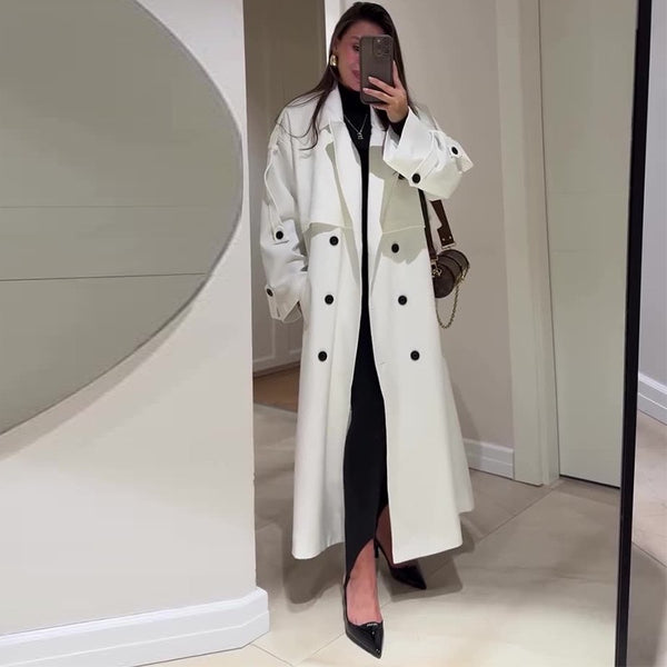 Timeless Trench Aesthetic: Inspired by classic trench designs, this coat blends sophistication with modern functionality, creating a piece that never goes out of style. Oversized Comfort: Designed for an oversize, relaxed fit, it allows for easy layering while maintaining a chic silhouette. Universal Warmth: The long-length design ensures coverage from head to knee, offering practical warmth without compromising style. Subtle Detailing: Minimalistic lines, a belted waist, and smooth lapels balance utility and refinement, making it ideal for everyday elegance.