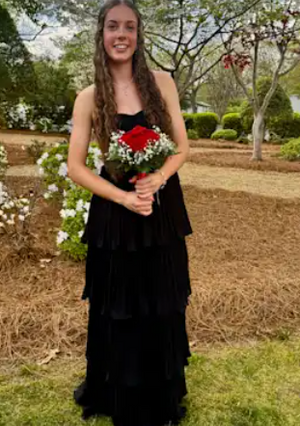 The dress features a structured bodice that supports and defines your shape, while the soft, flowing tiers add movement and drama to every step. Whether you're dancing the night away or posing for photos, this gown ensures you're the center of attention — effortlessly.