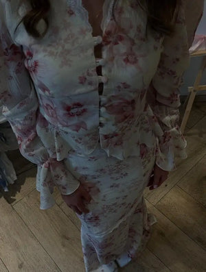 This elegant floral skirt outfit makes choosing an outfit a breeze, offering a complete look in one purchase. Feel confident and stylish without the hassle of mismatched pieces.