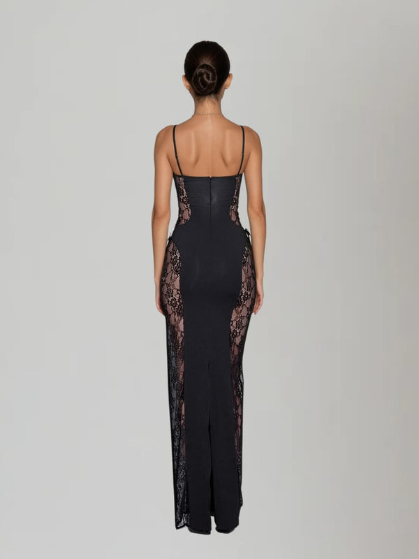 Inspired by moonlit evenings and the gentle allure of classic femininity, this gown captures the balance between delicate charm and understated power. Its exquisite lace overlay embodies sophistication, while the slender spaghetti straps draw attention to the neckline and shoulders with a touch of effortless sensuality. The silhouette flows gracefully, sculpting the body in all the right places, reflecting a woman’s natural confidence and poise. Every stitch tells a story of elegance — a fusion of vintage grace and modern minimalism designed to celebrate beauty in motion.