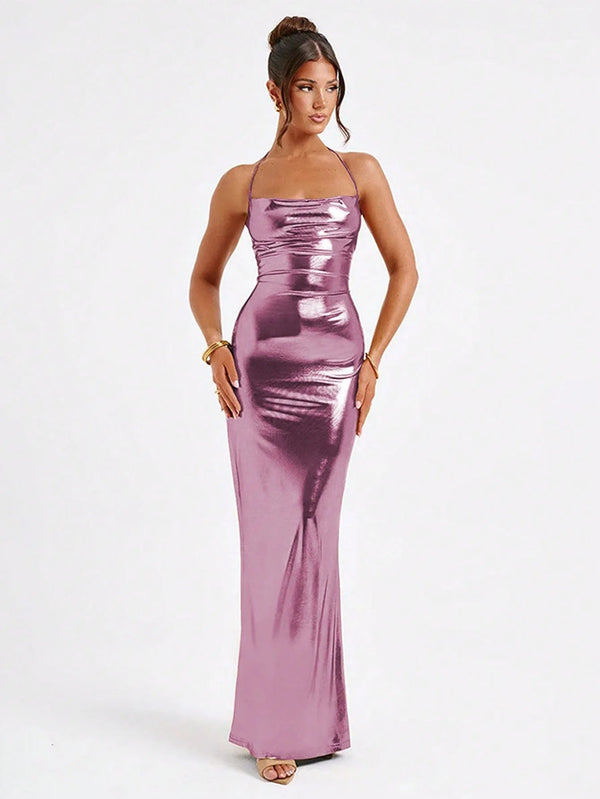 Inspired by classic silhouettes and the grace of modern femininity, the Elegant All-Season Maxi Dress blends sophistication and sensuality through refined simplicity. The halter neckline highlights your shoulders, while the open back and figure-hugging bandage design create a graceful, confident look. The soft, stretchy fabric ensures comfort throughout the year.