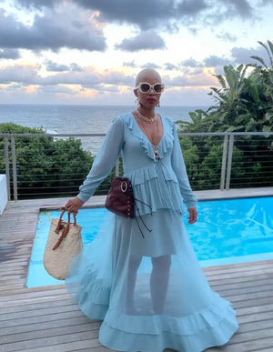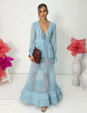 Transition effortlessly from autumn to winter with its adaptable design. The flared sleeves and layered ruffled skirt offer a fashionable look that suits any weather, ensuring you're always prepared for unexpected climate changes.
