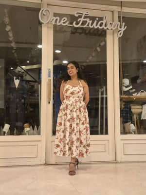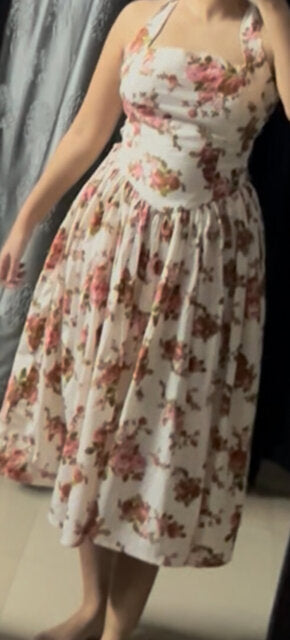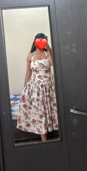 "This dress gives me confidence every time I wear it. The halter neckline adds a sophisticated touch, and the floral print feels both romantic and polished. I wore it to an outdoor wedding, and it was just stunning — comfortable, classy, and elegant all day.😊"