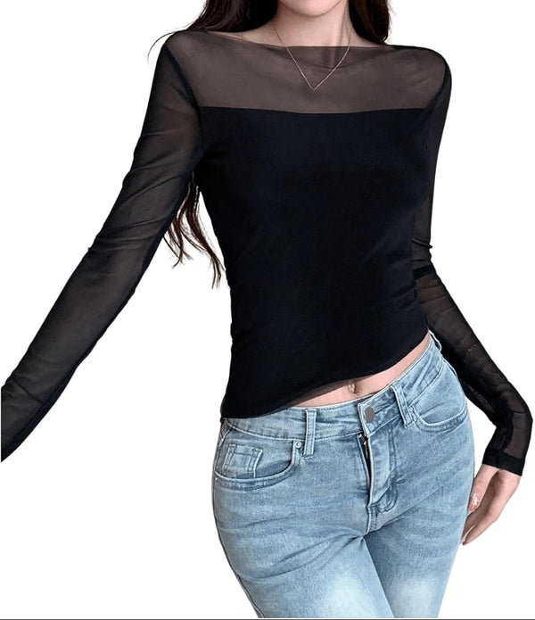 This off-shoulder mesh top enhances your style with comfort, offering a chic look for any occasion. Embrace versatility and elegance in your everyday outfits.