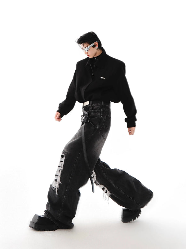 Product Description: Ripped Straight-Leg Baggy Jeans